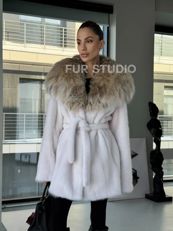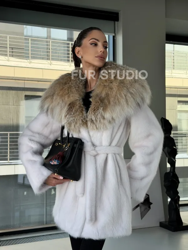 Мех данной шубы аукционная норка, цвет белый. Предлагается в размерах от 42 до 50. Длина модели 75-80 см, что выгодно подчеркивает фигуру девушек. Эта модель идеально подойдет для девушек и женщин, предпочитающих роскошные натуральные меха.