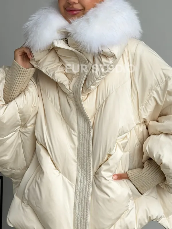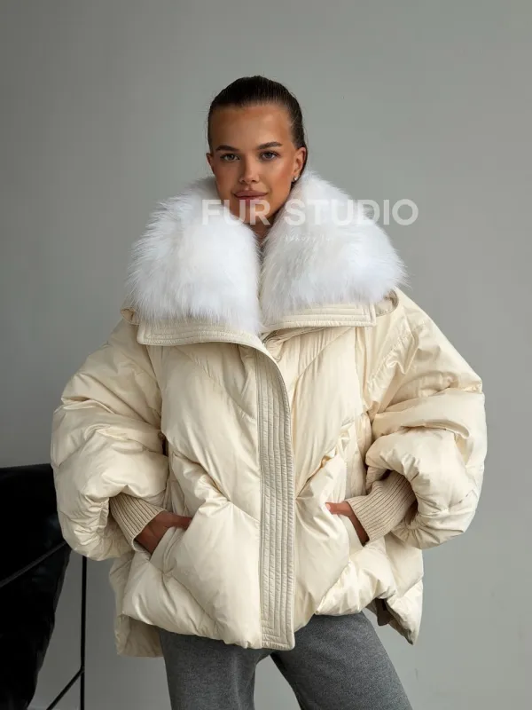 Бежевый зимний пуховик 102581