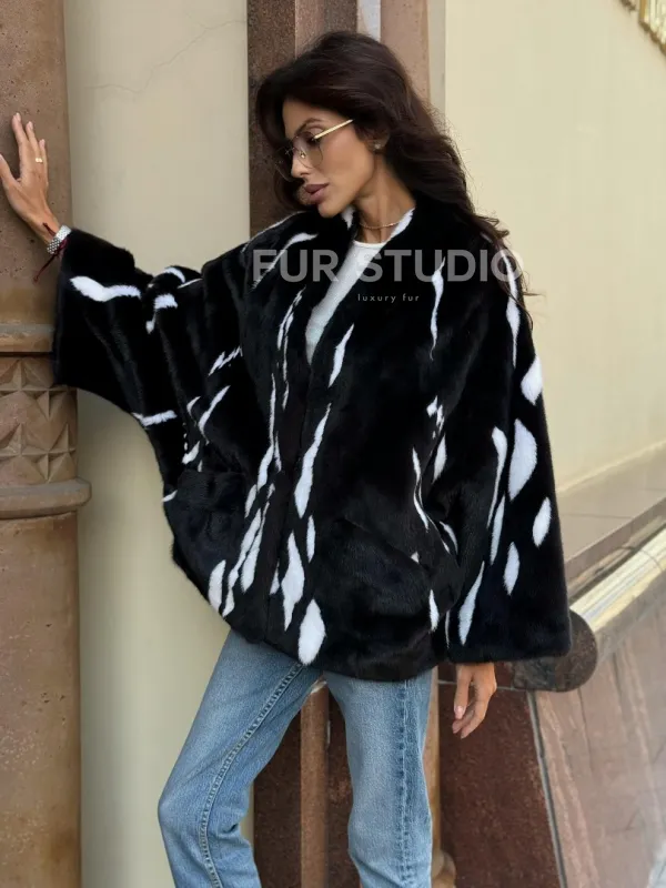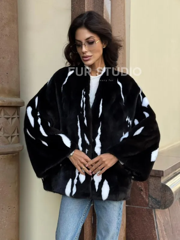 Черный норковый полушубок с рисунком доступна для покупки в нашем шоуруме Furs Studio в . У нас так же есть доставка во все города России. Добавьте немного роскоши в свой гардероб с этой шубой, которая будет служить вам многие годы.