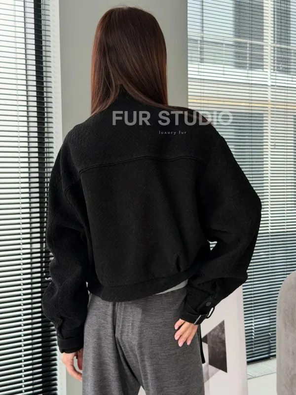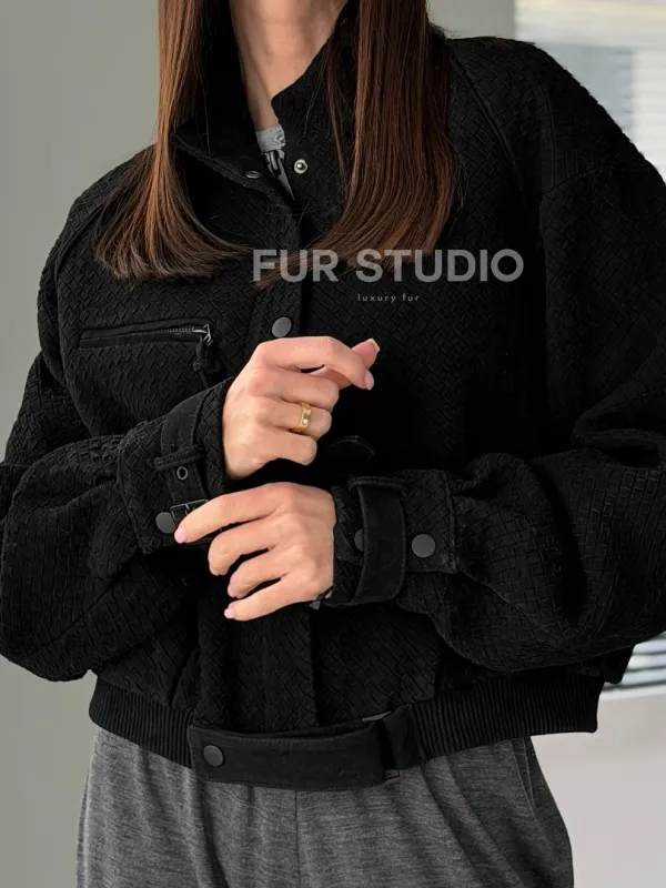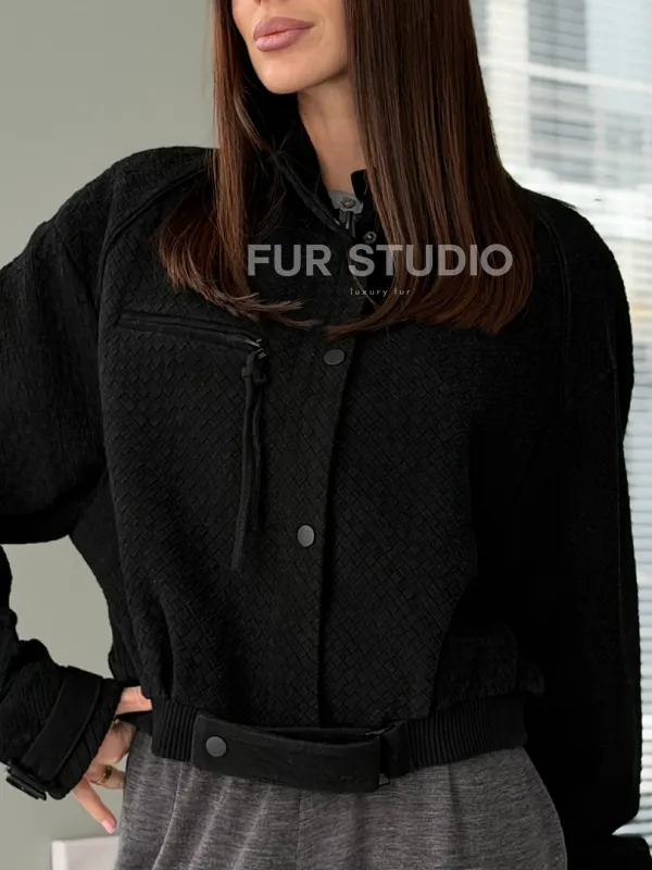 Черный замшевый кроп - бомбер доступна для покупки в нашем шоуруме Furs Studio в , где также предоставляется удобная доставка во все города России.