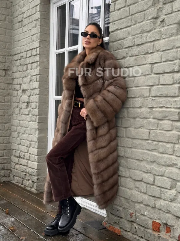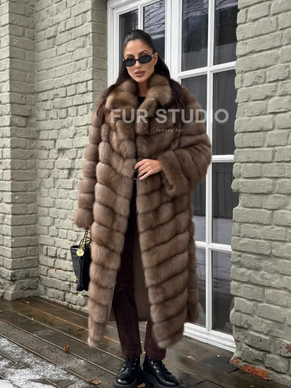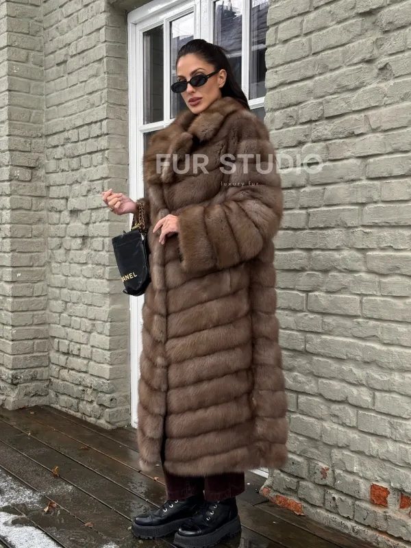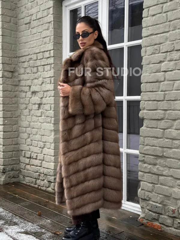 Длинная шуба из меха куницы 101348