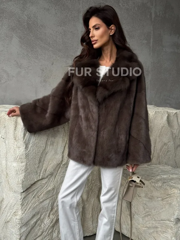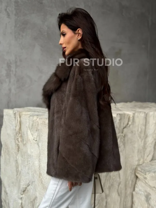 Мех данной шубы аукционная норка , цвет коричневый. Предлагается в размерах от 42 до 58. Длина модели 60-65 см, что выгодно подчеркивает фигуру девушек. Эта модель идеально подойдет для девушек и женщин, предпочитающих роскошные натуральные меха.
