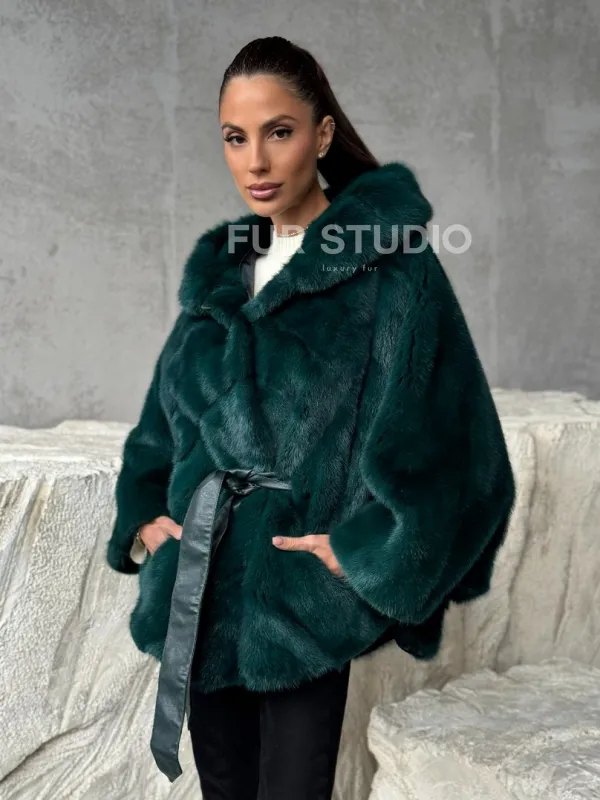 Мех данной шубы аукционная норка , цвет зеленый. Предлагается в размерах от 40 до 50 (oversize). Длина модели 70-75 см , что выгодно подчеркивает фигуру девушек. Эта модель идеально подойдет для девушек и женщин, предпочитающих роскошные натуральные меха.