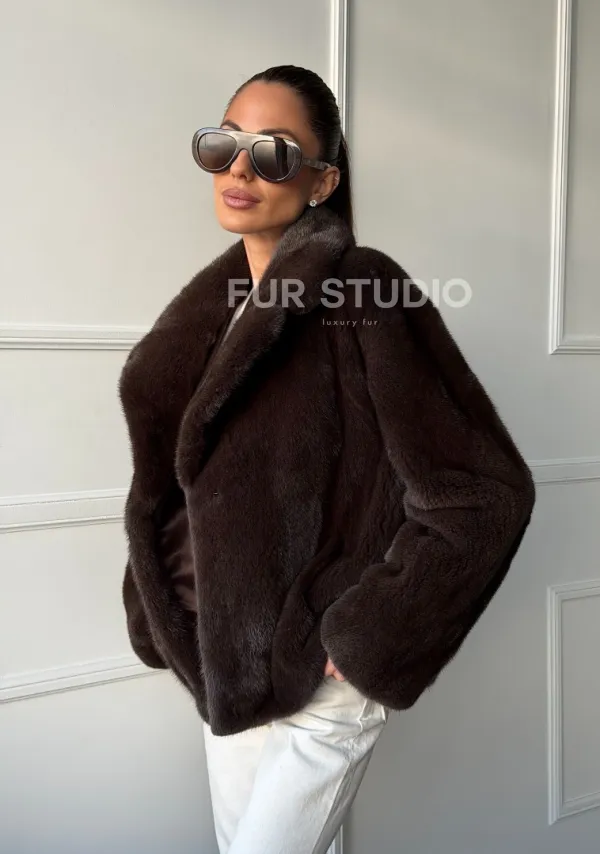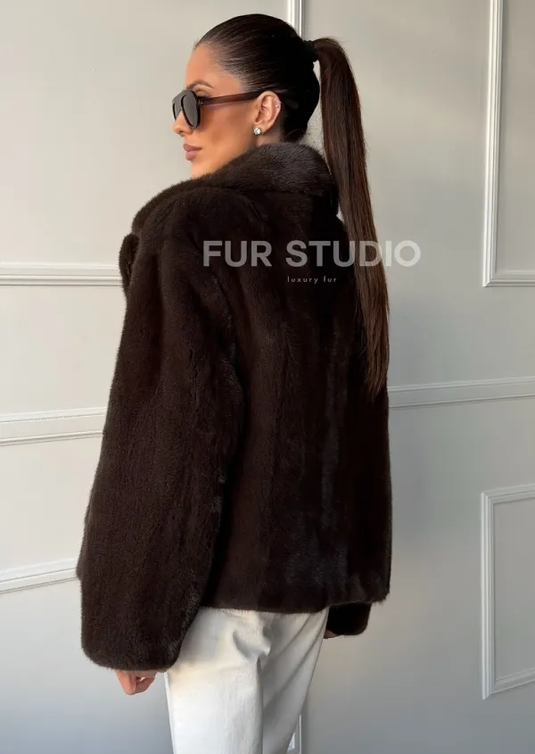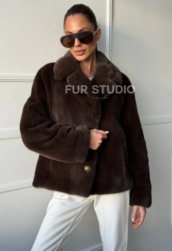 Мех данной шубы аукционная норка, цвет коричневый. Предлагается в размерах от 42 до 48. Длина модели 55-60 см, что выгодно подчеркивает фигуру девушек. Эта модель идеально подойдет для девушек и женщин, предпочитающих роскошные натуральные меха.