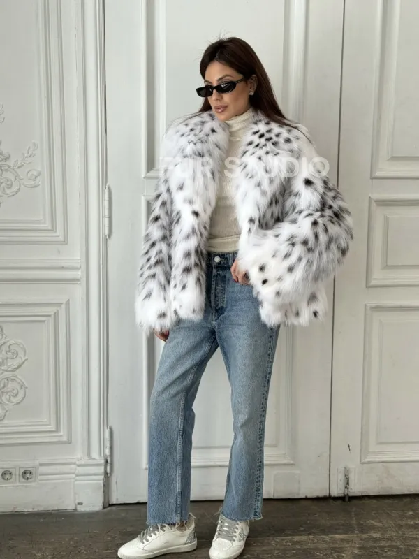 Полушубок из меха аукционной лисы (реплика канадской рыси) 100850