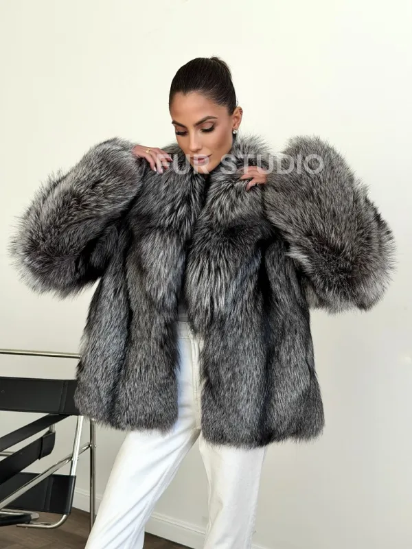 Мех данной шубы лиса, цвет серый. Предлагается в размерах от 42 до 46. Длина модели 60-65 см, что выгодно подчеркивает фигуру девушек. Эта модель идеально подойдет для девушек и женщин, предпочитающих роскошные натуральные меха.