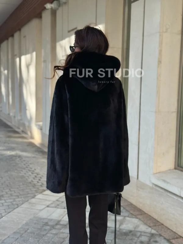 Шуба куртка из норки - черная доступна для покупки в нашем шоуруме Furs Studio в . У нас так же есть доставка во все города России. Добавьте немного роскоши в свой гардероб с этой шубой, которая будет служить вам многие годы.