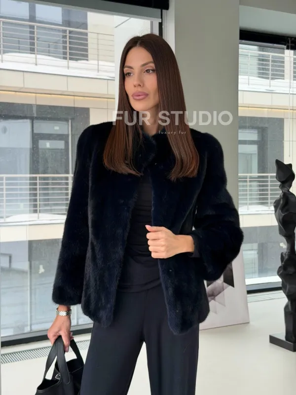 Мех данной шубы аукционная норка, цвет синий. Предлагается в размерах от 38 до 48. Длина модели 55-60 см, что выгодно подчеркивает фигуру девушек. Эта модель идеально подойдет для девушек и женщин, предпочитающих роскошные натуральные меха.